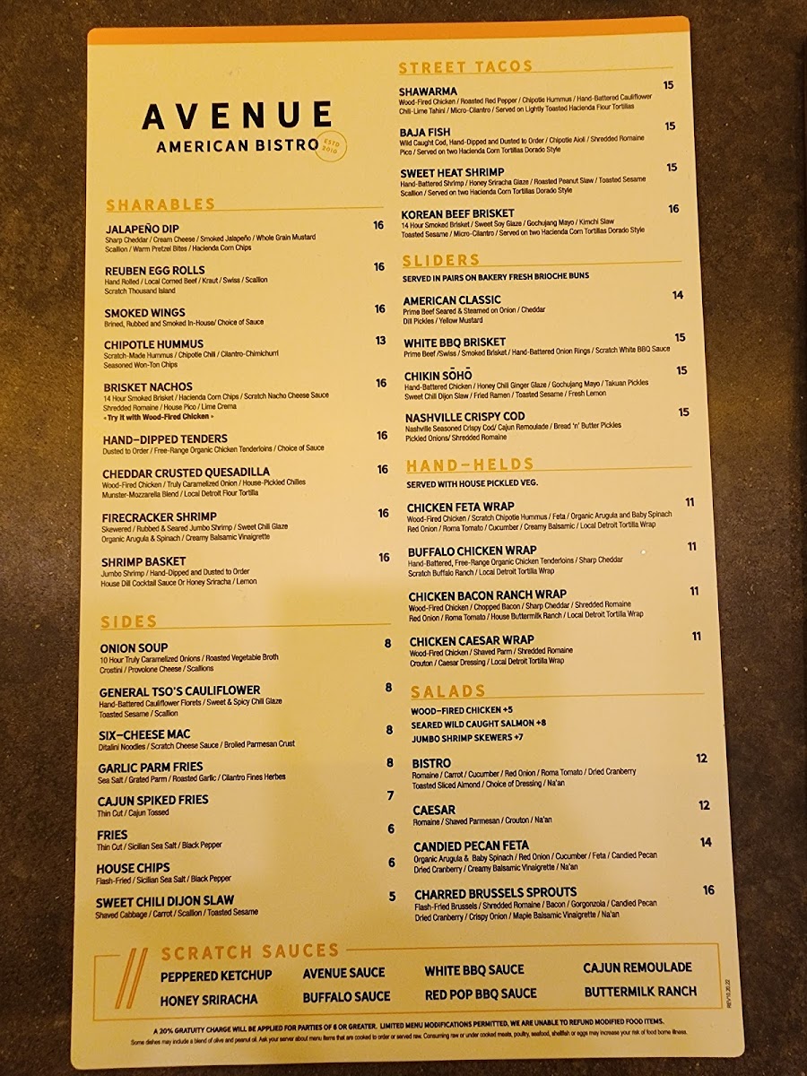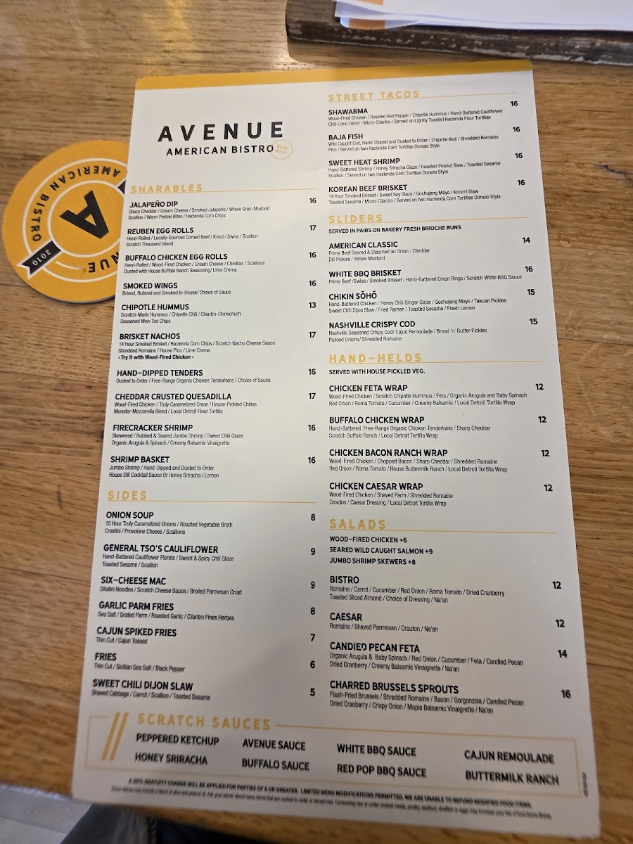 Welcome to Avenue American Bistro, an inviting gem nestled in the heart of Wayne, MI. This vibrant American restaurant effortlessly combines a lively atmosphere with a menu that celebrates the flavors we all know and love. Whether you're stopping in for a casual lunch, a family dinner, or a lively night out with friends, Avenue American Bistro is the perfect destination for satisfying cravings and creating memorable moments.